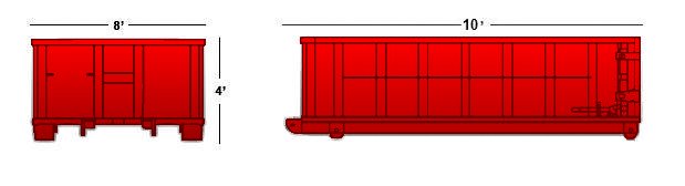 The measurements for a this size dumpster are usually: 8 ft. x 4 ft. x 10 ft.