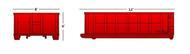 The dimensions of a 12-yard dumpster are: 8 ft. x 4 ft. x 12 ft.